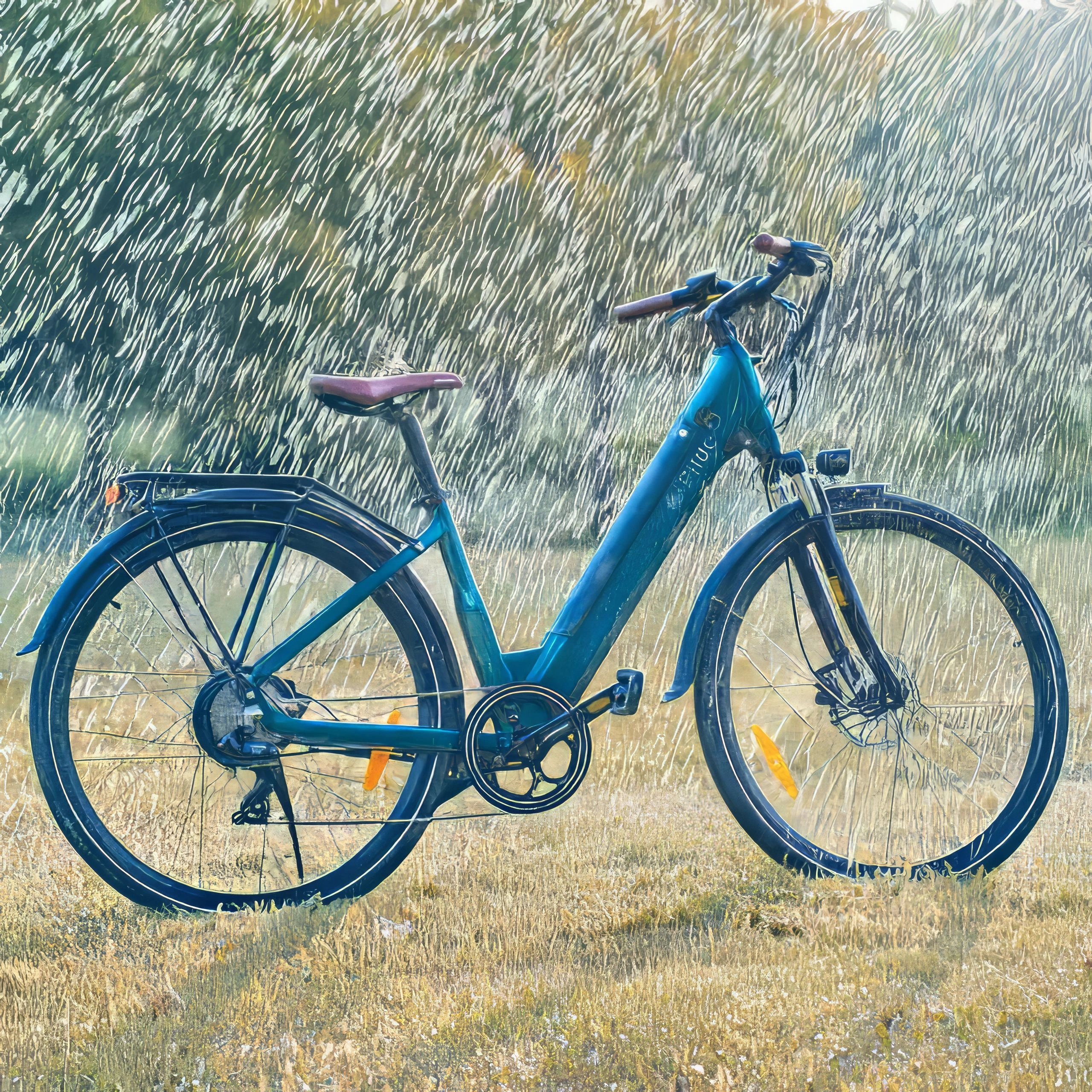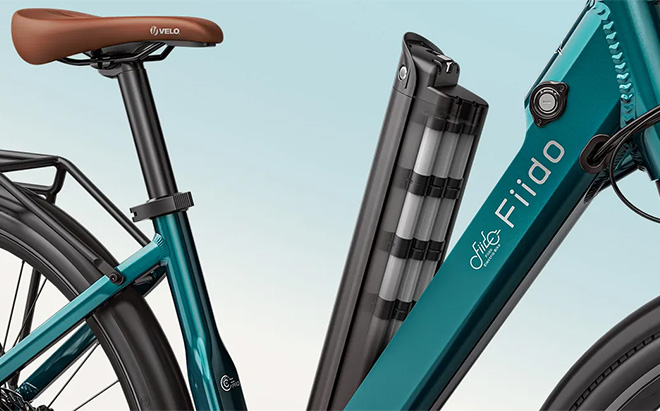Le Fiido C11 Pro est disponible enbleu émeraude avec des sièges et des poignées marron qui lui confèrent un look classique. Une version blanche est également disponible. Le cadre traversant facilite la montée et la descente du vélo, tandis que les roues de 700 cm restent élégantes. Une batterie cachée, des garde-boue complets et un porte-bagages intégré le rendent pratique sans être encombrant.