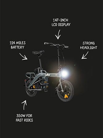 Le Fiido L3 est un vélo électrique pliant révolutionnaire doté d'une autonomie exceptionnelle et d'un design pratique. Construit autour d'une batterie massive de 23,2Ah et d'un moteur de 350W, ce vélo électrique offre une incroyable autonomie de 124 mi (200 km) tout en restant compact. Il vous accompagnera dans vos déplacements quotidiens et vos aventures du week-end.