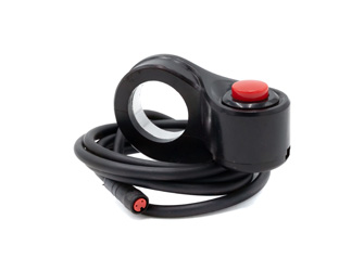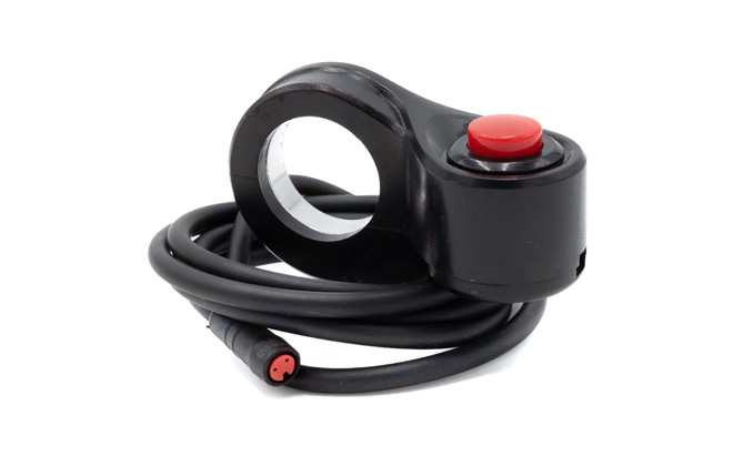 L'interrupteur du moteur est compact et s'adapte parfaitement au guidon de l'Inokim OXO. Sa petite taille n'encombre pas la zone du guidon, ce qui permet de conserver une disposition propre.